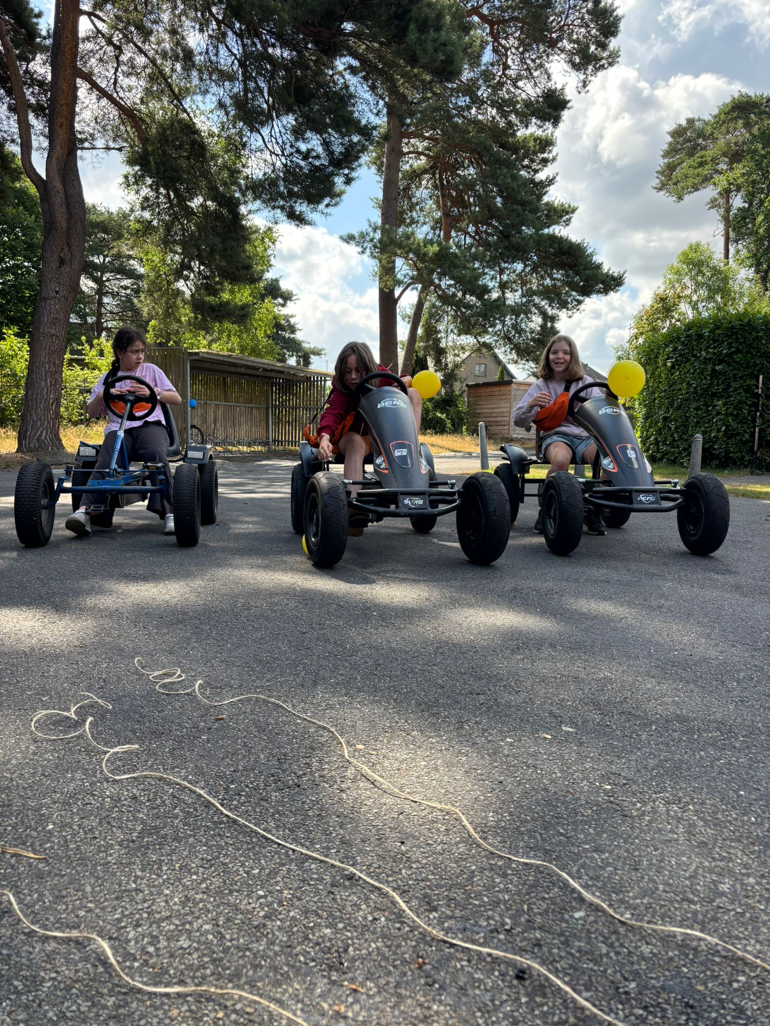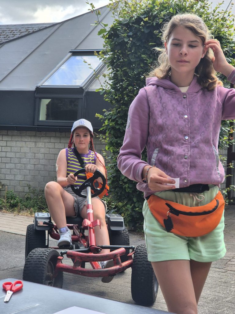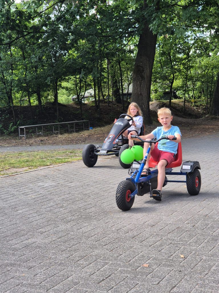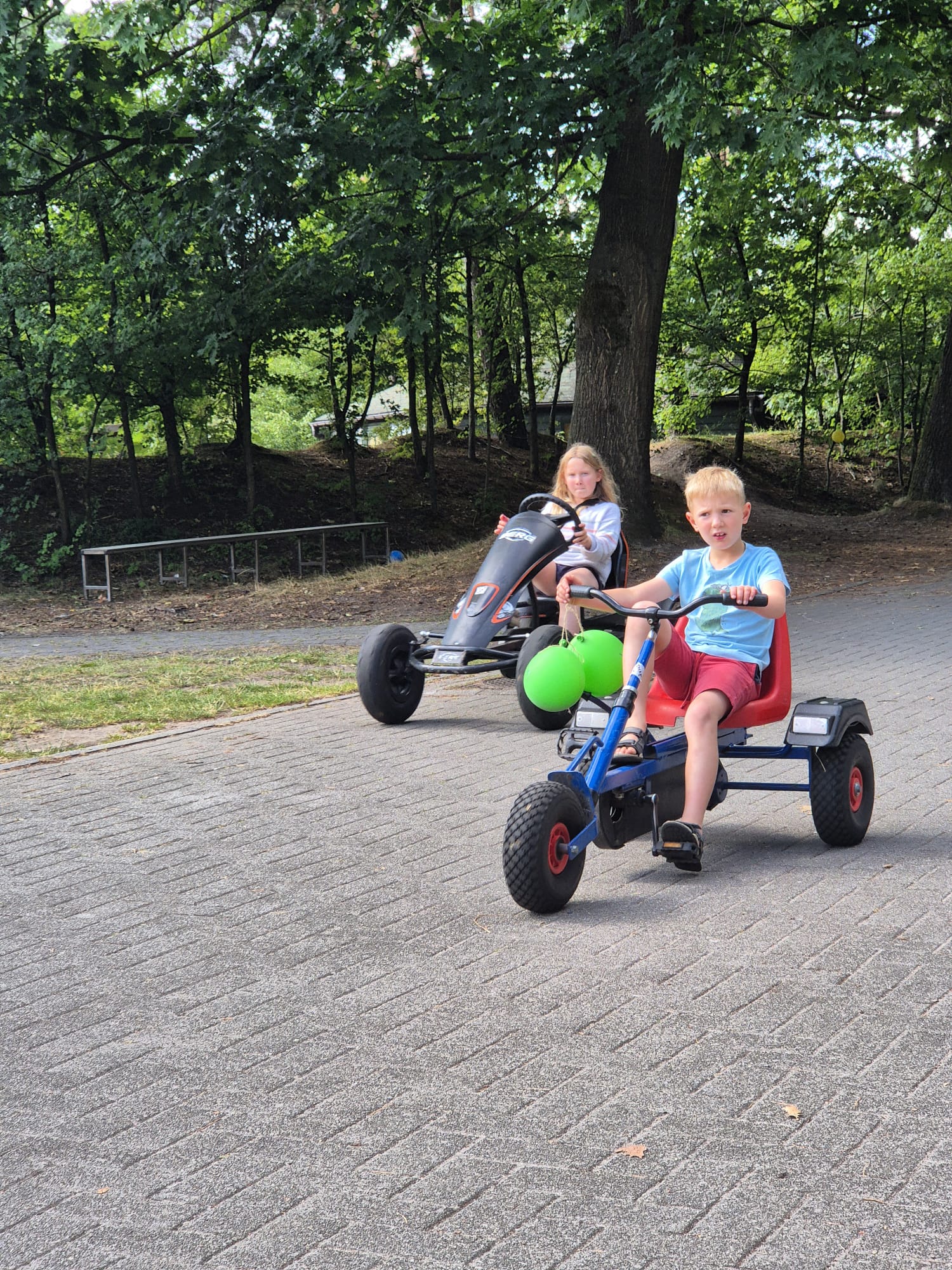 Donderdag 17 juli 2025 Vandaag maakten we het terrein onveilig met onze go-carts. Er werden tijdens het go-karten heel wat ballonnen verzameld en opdrachten uitgevoerd. Op deze aangename zomerdag mochten waterspelletjes zeker ook niet ontbreken.