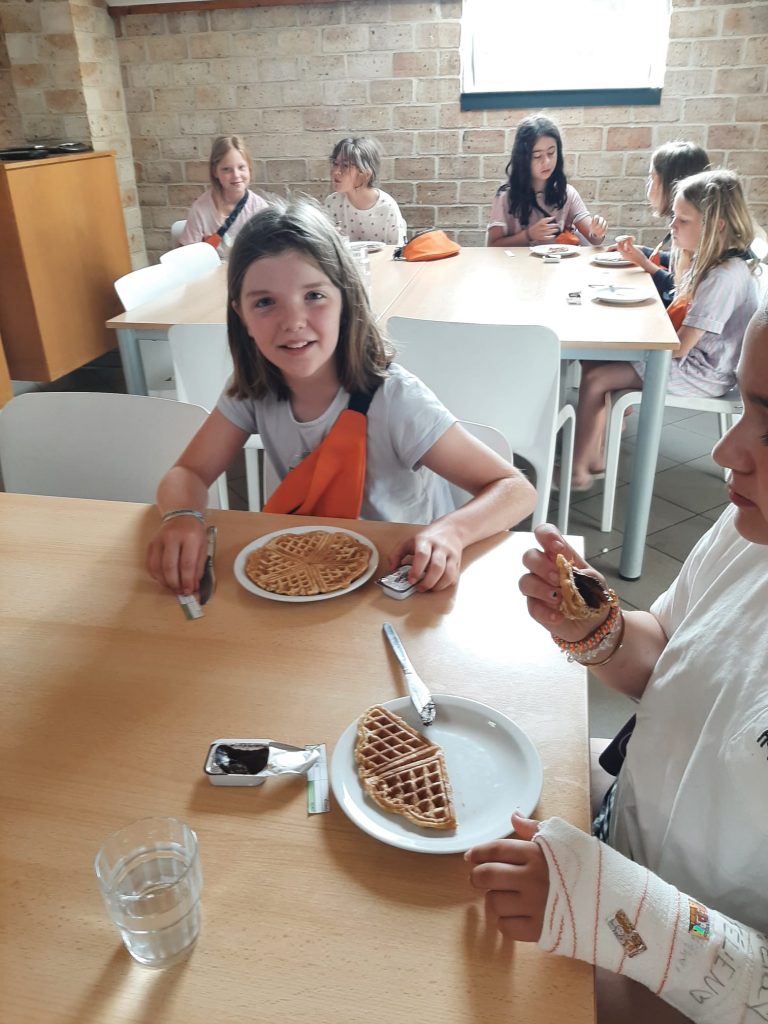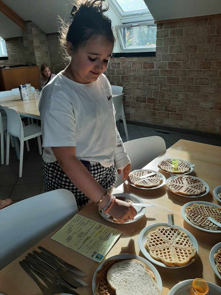Een primeur op kamp🧇! Vandaag kon er ook gekozen worden voor havermout ontbijtwafels. Er werd gesmuld😋.